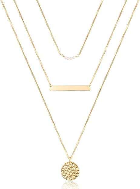 - PACKAGED Comes with an elegant gift box, pearls beaded necklace, bar necklace, hammered disc pendant necklace. 3 pcs necklace, you can wear one of them or all of them.